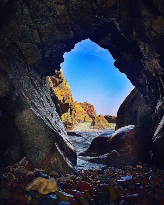 Viewed from the sea, the mountain rocks weathered by wind, rain, and seawater erosion, lying diagonally and stacked on top of each other, resemble a giant dragon head, facing southeast. The cool and refreshing air inside the cave will also relieve you from the summer heat.