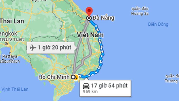 According to data from Google Maps, the road distance from Saigon to Da Nang is 959 km. Saigon and Da Nang are connected by two road routes: National Highway 1A and QL14. Traveling from Saigon to Da Nang by road takes approximately 17 - 20 hours.