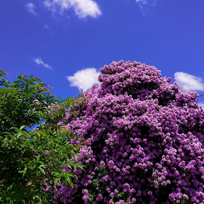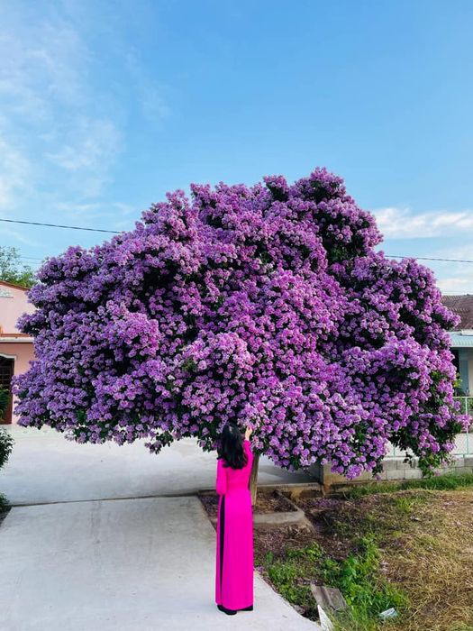 The Bong Lang tree, situated along National Highway 1A in Liem Thai hamlet, Hong Liem commune, Ham Thuan Bac district, has begun to blossom in vibrant purple. Local residents and tourists from all over flock here to witness the unique and unparalleled beauty of this Bong Lang tree.