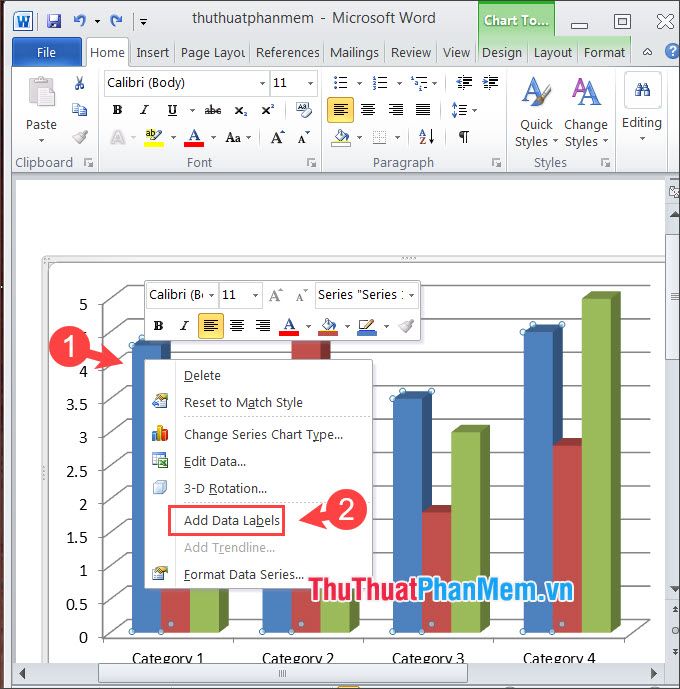 By default, charts created in Microsoft Word do not display data. This article provides a simple tip to help you easily and quickly view data on the chart.
