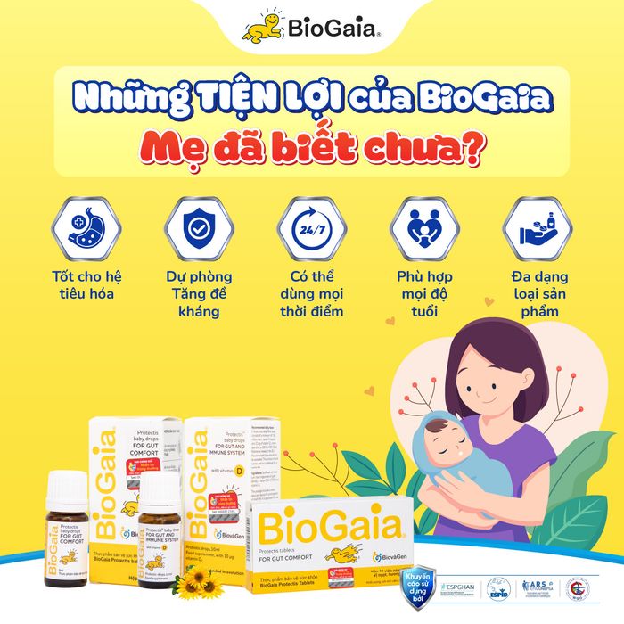 Here's the answer to your question: Does BioGaia help with constipation? It's recommended for mothers to give their babies regular doses of probiotics to protect their digestive system. You can purchase BioGaia at Mytour, an online and offline store nationwide offering genuine products for mothers and babies.