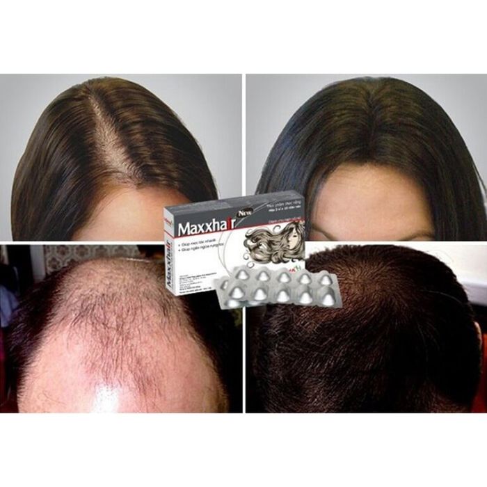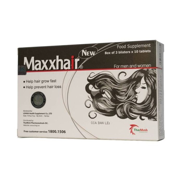 In addition to the aforementioned benefits, Maxxhair hair growth pills also reduce hair loss, supporting the treatment of thinning hair, hair loss, especially in postpartum women and those with baldness. Furthermore, it eliminates toxins on the hair and scalp caused by environmental factors such as pollution, dust, or hair after chemical treatments like dyeing or perming.