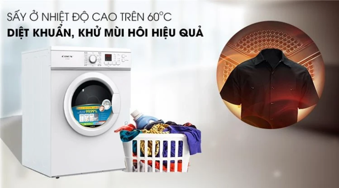 With a clothes dryer, users can be reassured as it can dry clothes to 90-95% moisture content. Additionally, modern dryers integrate antibacterial technology, preventing the growth of disease-causing bacteria. This protects the skin and health of both individuals and families.