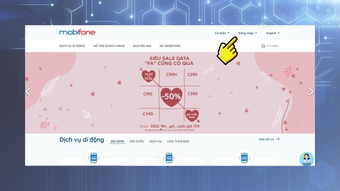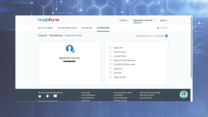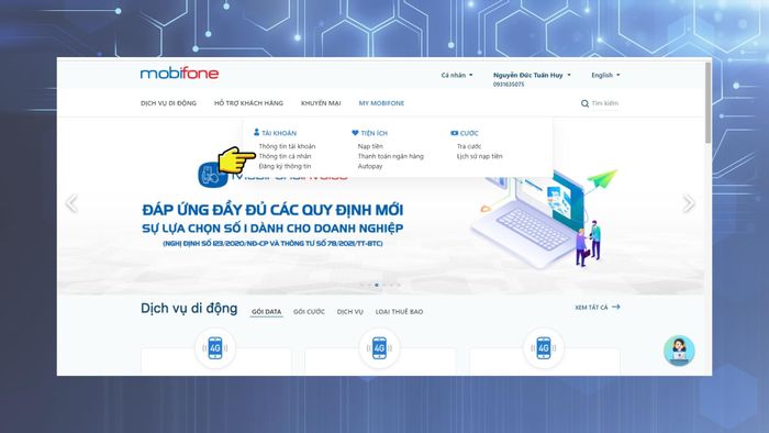 - Step 4: Once successfully logged in, on the homepage navigate to My MobiFone > Personal Information.