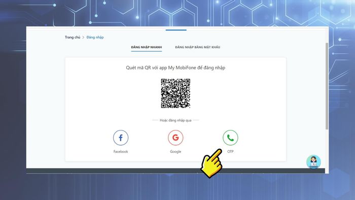 - Step 2: Next, select the Quick OTP Login method or scan the QR code from My MobiFone.