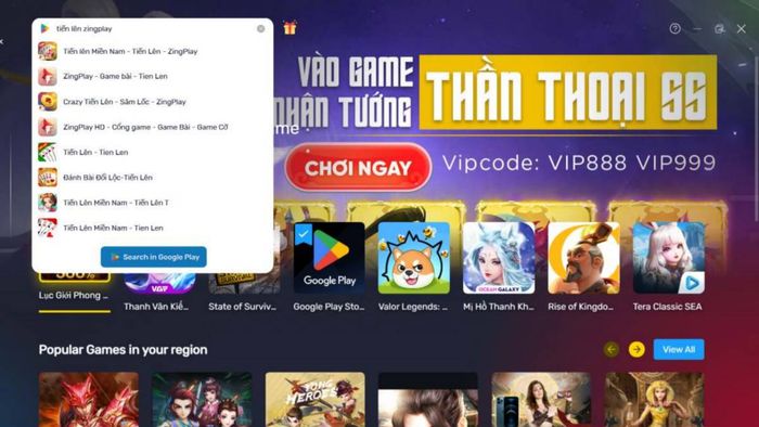 Open the installation file and choose 'Yes' to install the emulator on your device.Step 3: After installation, launch BlueStacks and access the Play Store. In the search bar, type 'Tiến Lên Zingplay'.
