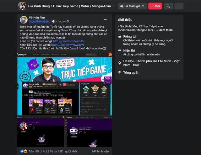 Although Dũng CT and Team Đụt have not confirmed this information yet, numerous fans have shared images of the Trực Tiếp Game and Tứ Tồ channels suddenly appearing on the Nimo TV platform. Specifically, within the Gia Đình Dũng CT Trực Tiếp Game ( Wibu ) Manga/Anime/Game group, many fans of Dũng CT and Team Đụt have discussed Trực Tiếp Game's preparation for a 'housewarming' on the leading livestreaming platform in Vietnam - Nimo TV, after many years with Nonolive.