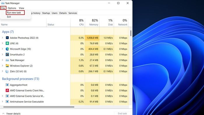 The quickest way to fix the black screen error on Windows 11 is to turn off and restart using Task Manager. Follow these steps: