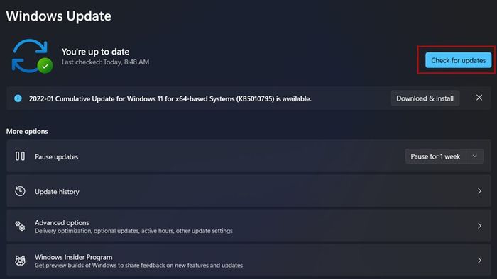 Step 3: Select Check for updates to perform the check.