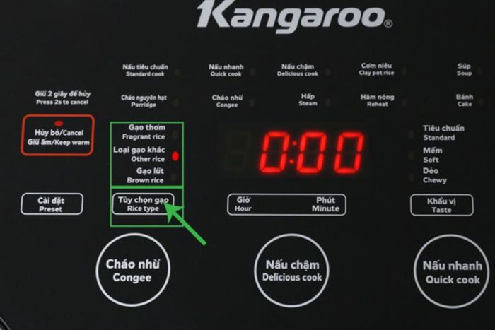 How to use the Kangaroo electric rice cooker to cook delicious riceStep 4: Select the type of rice by pressing the Rice Options button.