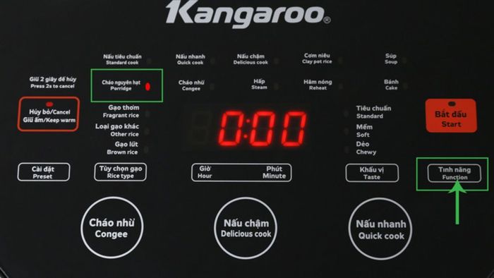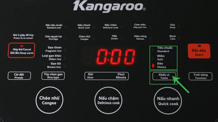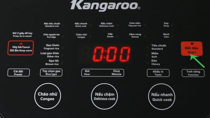 Kangaroo electronic rice cooker control panelIn addition, the control panel also has shortcut keys for some quick cooking modes such as Porridge, Slow Cook, or Quick Cook.