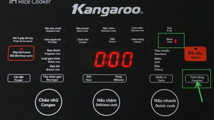 Step 4: Press Start to begin the rice cooker's baking or steaming process. Wait until the countdown timer ends to remove the cake or food.