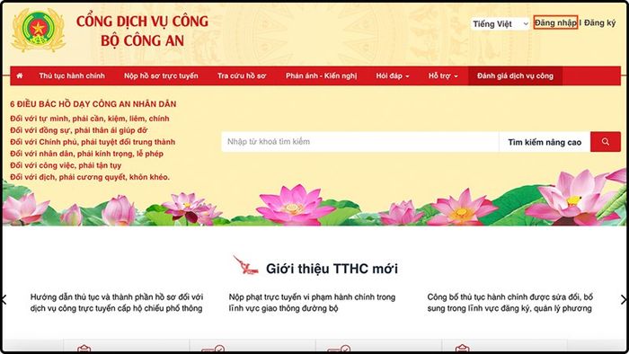 Step 1: First, visit the official website of the Ministry of Public Security's public service portal via the link provided below > then click on login to access the services provided by the Ministry of Public Security.