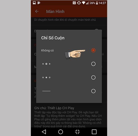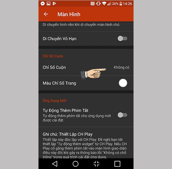Step 6: Go to the screen -> scroll indicator -> none.