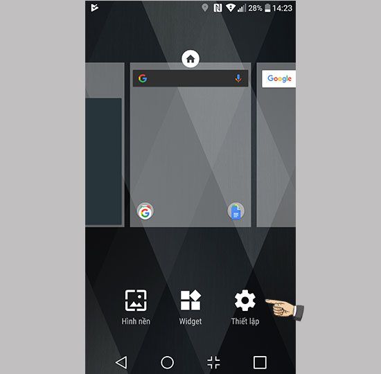 To initiate setup, long-press the home screen -> settings.