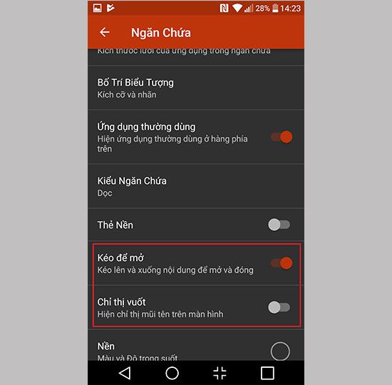 Step 3: To set up new experiences, long-press on the home screen -> drawer -> enable swipe to open and close indicators.