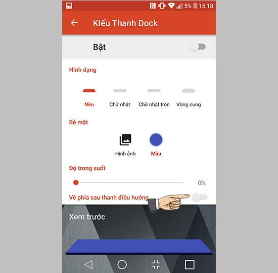 Step 7: Return to Nova settings -> dock -> dock style -> transparency as desired -> enable behind navigation bar.