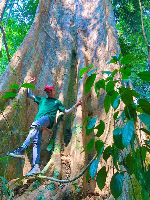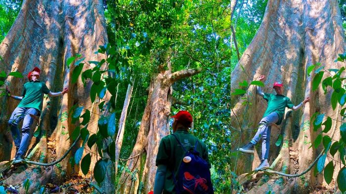 On the journey, you'll marvel at the wonders of the forest, breathe in the fresh air, embrace the tree trunks to feel their coolness, and finally check-in at the colossal Kơ-nia tree. If the journey extends, you'll delve deeper into the forest, encountering tall, magnificent trees, creating an even more picturesque scenery.