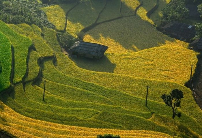 Phung Village is located near the border with China. To reach this destination, you need to navigate through a winding mountain pass of nearly 30km, cutting across the hills to reach the village center. Not only are there vast valleys, but Phung Village also boasts numerous terraced fields, cascading down the steep mountain slopes. Along with Luoc Village, this is where you'll find the highest terraced fields in Vietnam.