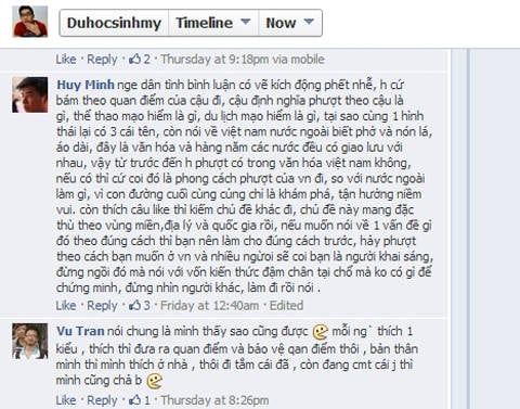The 'verbal combat' between the two sides is both persuasive and logically sound. Online debates nowadays are few, but perhaps it's Duhocsinhmy's straightforwardness rather than throwing stones, and Trang Ha's calmness and experience that make this topic special, taken seriously rather than just a casual scandal or fame-enhancing event.