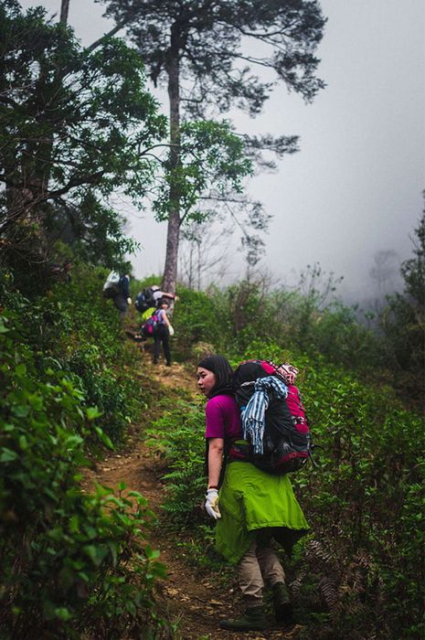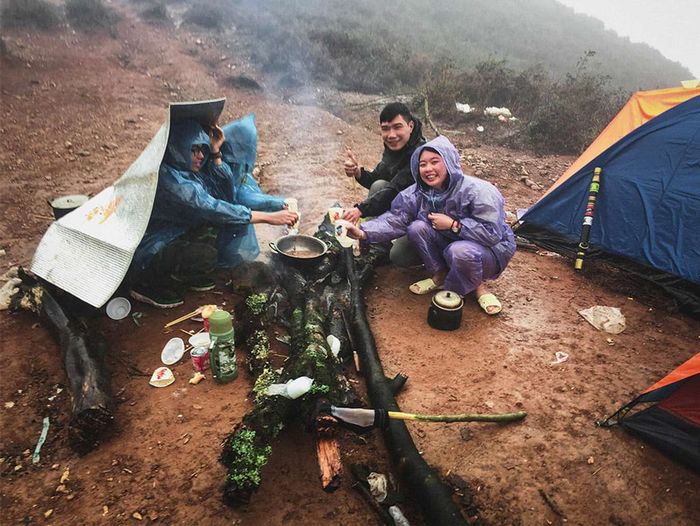 Instead of carrying dry rations and a few bottles of water to lighten our backpacks, we hauled up the Tà Chì Nhù summit a hot pot of kimchi with a variety of meat, eggs, and vegetables, a roasted chicken, and even brought hot milk, bread, and coffee for a lavish mountain breakfast for the entire team. Therefore, the team's shared load for the mountain climb is quite heavy, with a minimum of 10 kg for males and 5 kg for females, and no porters accompanying us.