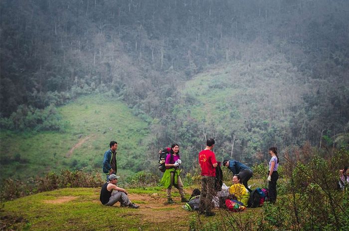 New year, carrying the 7kg backpack as per the demanding team leader's orders, female - I kick off with a challenging trek, my first ever, to ascend the sunlit and windy summit of Tà Chì Nhù. This journey concludes the long days of struggling, fearing I couldn't make it, afraid my slightly aching knees from a careless fall in Mộc Châu at the end of the year would hinder my beloved companions.