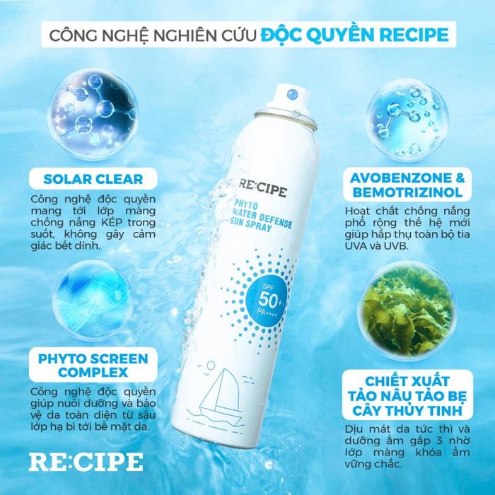 Introducing RECIPE SPF50+ PA++++ Recipe Phyto Water Defense Sun Spray, the ultimate sun protection solution. This advanced sunscreen features a dual-filter technology that effectively absorbs UVA and UVB rays, providing optimal protection for both face and body. Its lightweight, non-greasy formula ensures maximum coverage without leaving a residue.