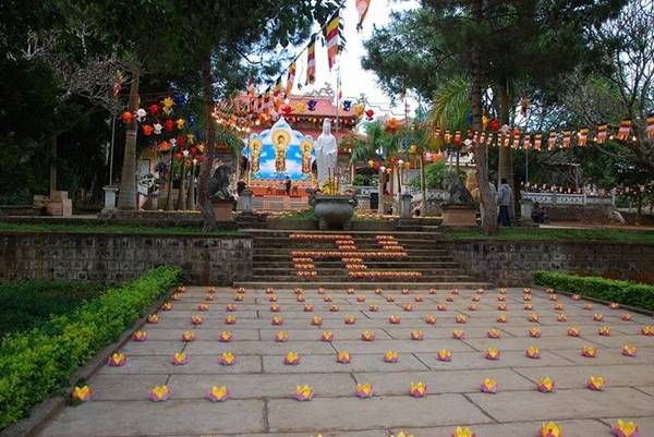 Linh Thắng Pagoda (located on Hùng Vương Street, QL 20, Di Linh town) was established in 1993 through the efforts of Mr. Huỳnh Duyên Quỳ and Mr. Trương Quang Thám, who rallied the local community for contributions. Visitors to Linh Thắng Pagoda can admire its splendid architecture, beautiful surroundings, and refreshing courtyard.