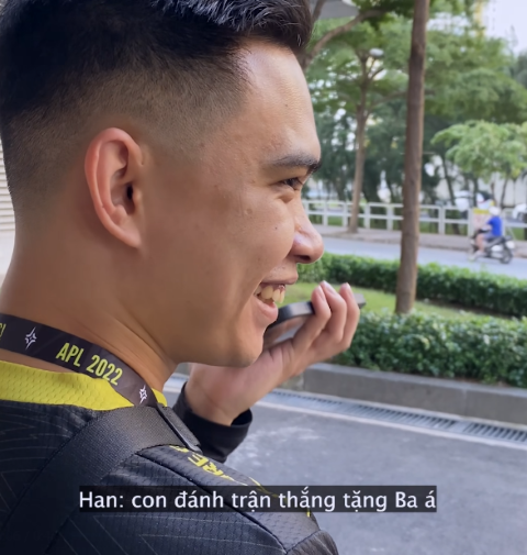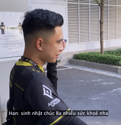 If you're a hardcore fan following him, it's not difficult to notice that Han is also a sentimental player, always oriented towards family. Unlike his strong presence on the battlefield, behind the scenes, Han is as innocent as a child. Fans have witnessed him gleefully sharing his achievements with his mother at the AIC 2022 tournament. The young man born in 1997 couldn't contain his emotions and continuously boasted about his accomplishments: 'Did mom watch me compete? In that moment, I took down 3 opponents by myself in that turret.'