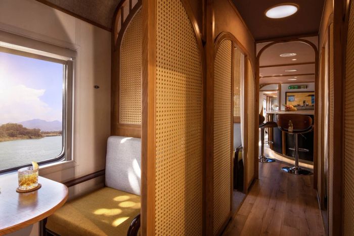 If you're seeking a more comfortable rail experience, The Vietage is the perfect choice, priced around 350USD/person/way (about 8,000,000VND). Launched in 2020 by Anantara Hotels, The Vietage accommodates no more than 12 passengers, spanning about 6 hours, traveling between Da Nang and Quy Nhon. Onboard, jade stone tables, flowing curtains, and private stalls evoke the romance of classic train travel. You can immerse yourself in the scenery of peaceful villages, with grazing buffalo in the fields, glimpses of distant villages, and golden rice fields under the vibrant sun.