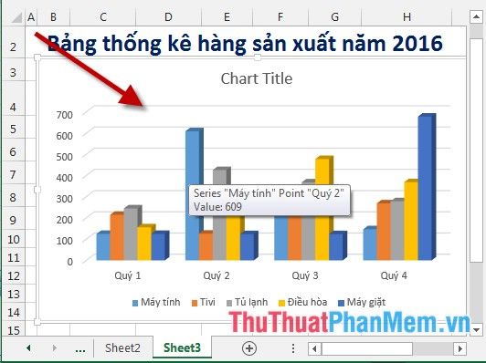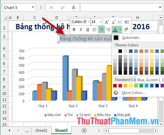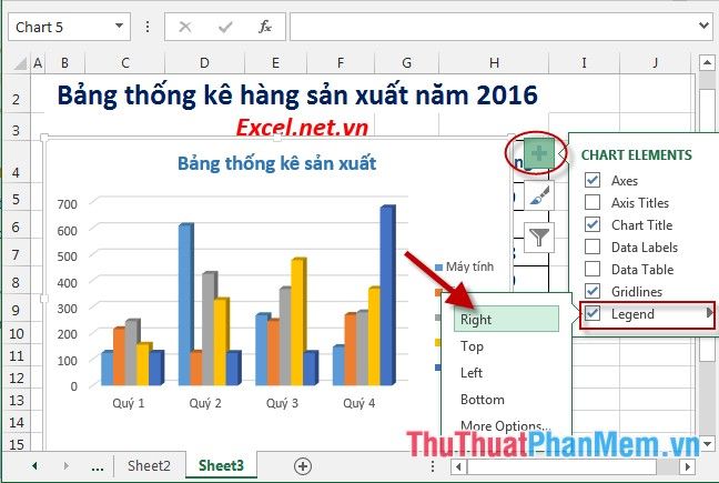 Step 6: In case you want to change the position of the legends, for example, move the item legends to the right, follow these steps: Click on the chart -> click on the Chart Element -> Legend -> Right: