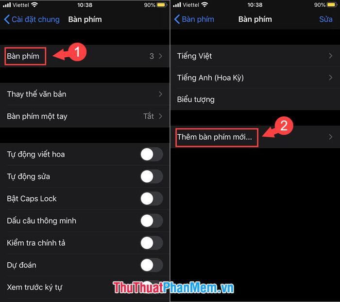 Step 3: Choose Keyboards (1) => Add new keyboard (2).
