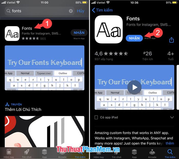 Note: The Fonts app doesn't support Vietnamese and offers only a limited selection of fonts. To access the full range of fonts, you need to purchase the advanced font package within the app.