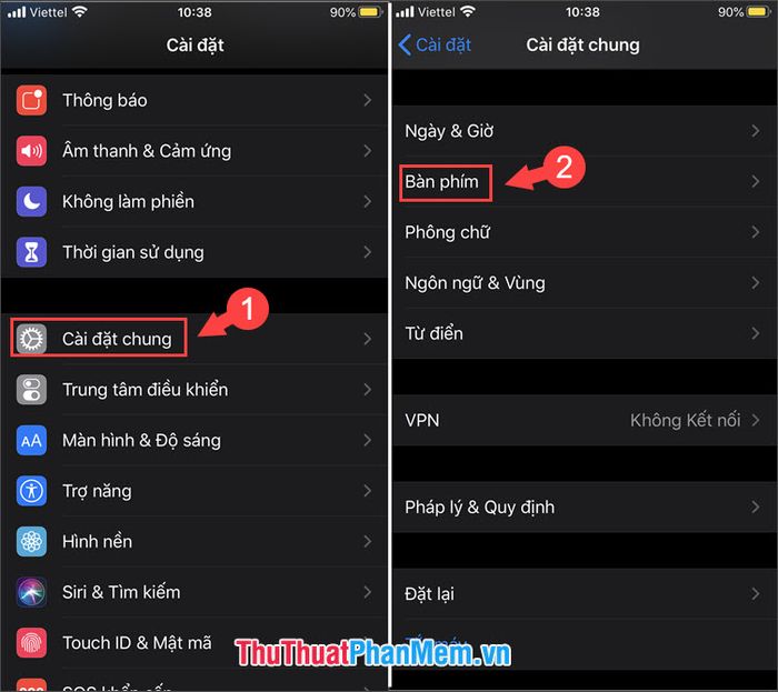 Step 2: After downloading, you don't need to open the Fonts app. Next, go to Settings => General => Keyboard (1) => Keyboards (2).