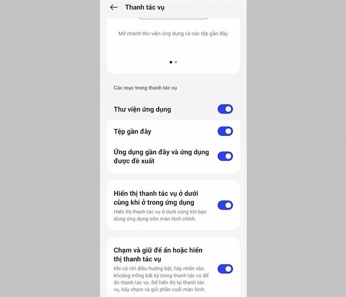 Step 2: Next, the customization interface will appear with toggle switches for various options. Depending on your preference, turn on or off each feature you desire. Alternatively, users can easily hide the taskbar on the screen if they choose not to display it.