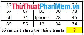- Example of counting the number of cells with numeric values in the following table: