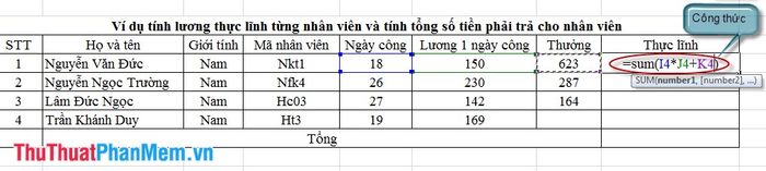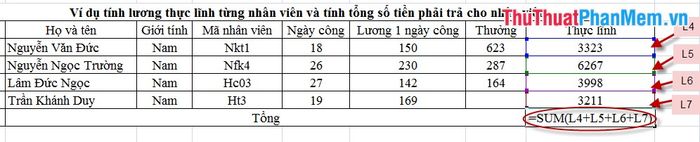 We use the Sum function to calculate the net salary for employees: