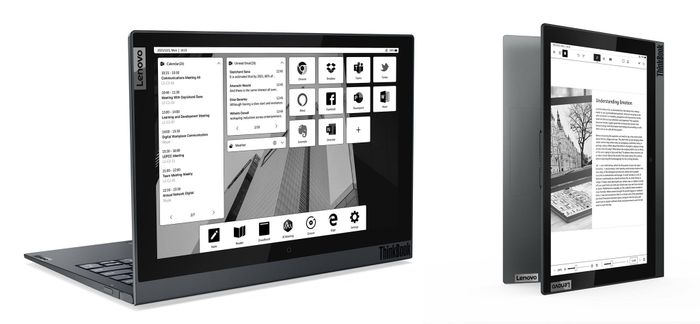 Experience the unparalleled sophistication of the ThinkBook Plus Gen2, boasting dual screens - a vibrant IPS display and an expansive e-ink panel nestled on the exterior.