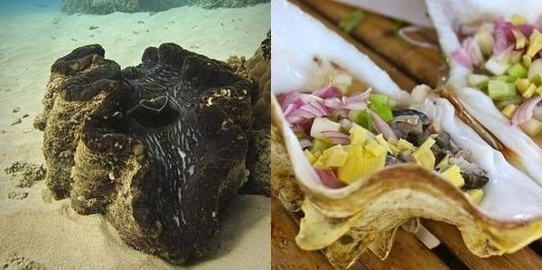 Giant clam, the largest bivalve mollusk, is famous for its unique shape and is highly valued by Asian tourists. Its meat is described as having a rich, savory taste similar to clams but with a chewy, octopus-like texture.