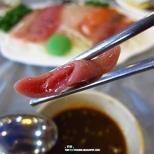 Anglerfish: Recognizable by a protruding flesh piece from its head acting as bait. Despite its frightening appearance, with a rough body and jagged teeth, it's considered sweet and pleasant when prepared as sashimi by Asian tourists.