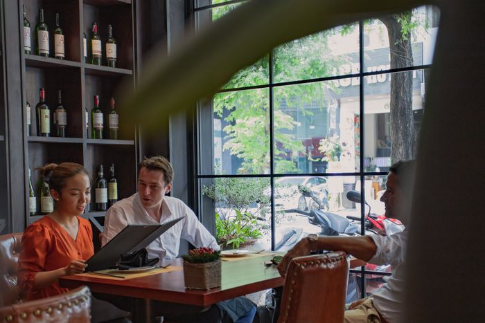 Moo Beef Steak Tran Quoc Toan boasts a spacious setting accommodating up to 120 guests, along with a private room for larger groups of about 8-9 people. A highlight is its sophisticated wine area, showcasing an exquisite collection of fine wines that add a chic and captivating charm to the ambiance, making it a prime spot for dates in Hanoi.