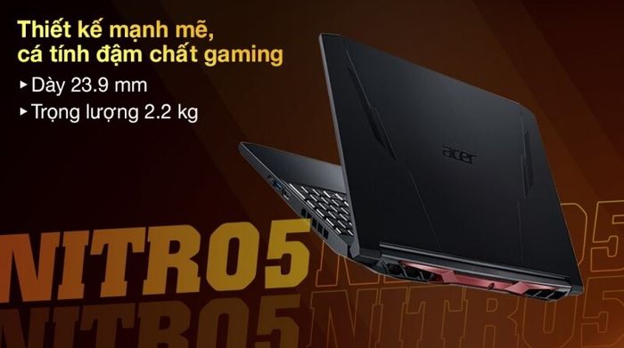 The latest version of Acer Nitro 5 continues to pursue its distinctive gaming design style, combining dominant black with striking red details to create standout highlights. Its rugged design and sharp angles evoke a strong and inspirational feeling during gaming sessions.