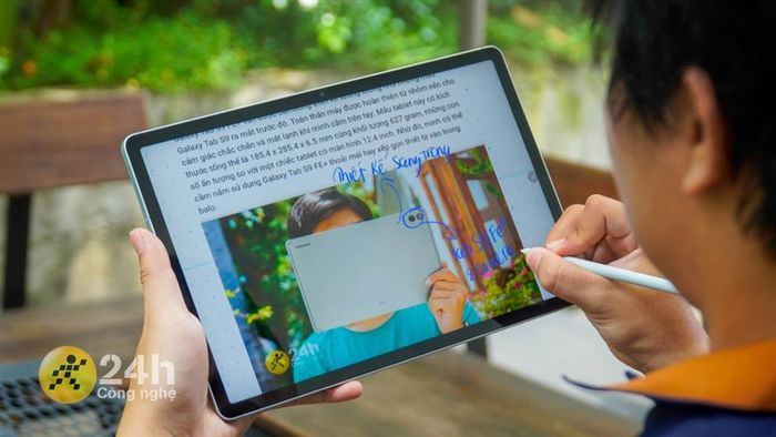 Beyond its standout design, the Galaxy Tab S9 FE+ is well-optimized in terms of software, rivaling other high-end products in the Galaxy Tab S9 series. Thanks to the S Pen and sophisticated apps like GoodNotes, Clip Studio Paint, LumaFusion, we can quickly highlight content while reading documents or presenting slides, edit images, videos, etc., on the Galaxy Tab S9 FE+.