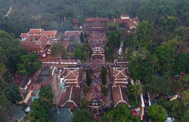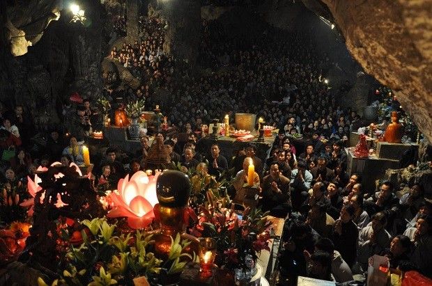 Every year on Buddha's Birthday (the 19th day of the 2nd lunar month), people from all over come to offer incense to Goddess Ba Chua Ba and pray for blessings. Buddha's Birthday falls in the midst of spring, when flowers are blooming and the weather is pleasant, so pilgrims not only come to worship but also enjoy the scenic beauty of Huong Son Mountain. This is also the origin of the Huong Pagoda festival in later years.
