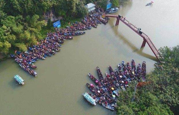 The Huong Pagoda Festival takes place at the scenic Huong Son landscape in Huong Son commune, My Duc district, Hanoi. Just about 62 km southwest of the capital center, the Huong Pagoda festival attracts people from across the North to celebrate the spring pilgrimage.