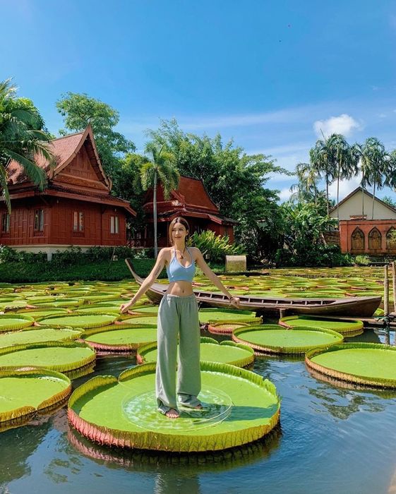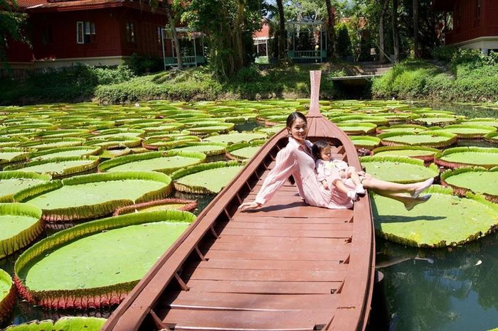 Thanks to meticulous care, the gun-shaped leaves at Ma Doo Bua Cafe thrive exceptionally well. Each leaf can withstand a person weighing around 65 Kg standing on it, supported by a plastic disc placed on top. The unique photo opportunity attracts a large number of tourists to the cafe.