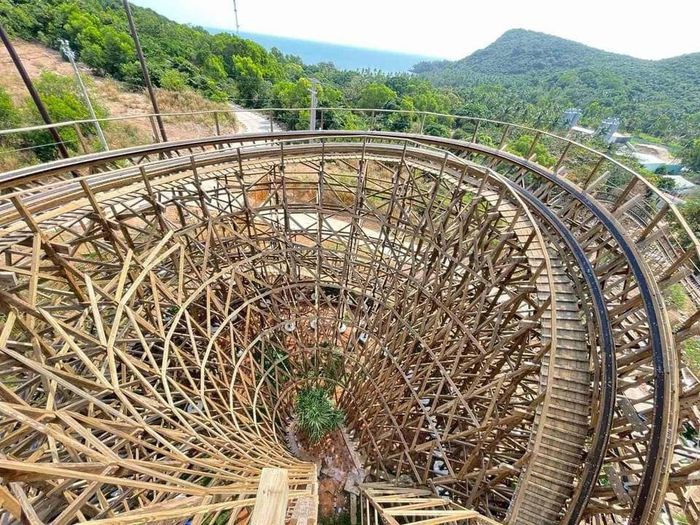 The wooden high-speed coaster located in Phu Quoc will commence operations from February 2022. This unique coaster, named Moc xa thinh no, boasts a maximum height of 32.4m, 14 steep slopes, and intertwining spiral tracks.