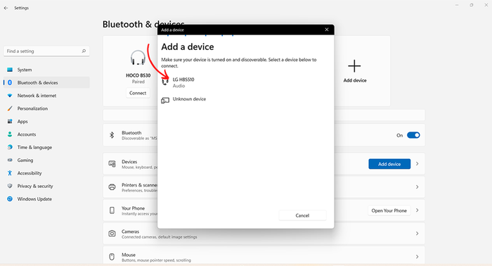 Step 3: Continue to Add devices > Bluetooth for searching nearby devices.