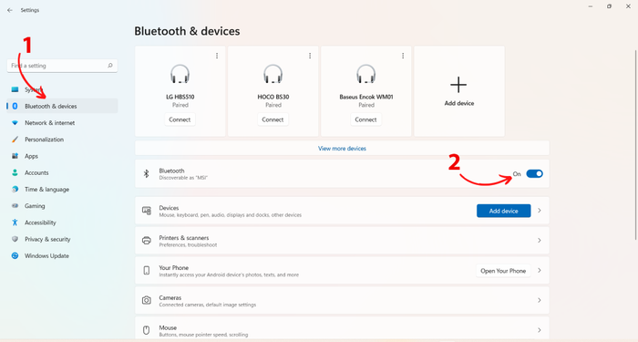 Step 2: Go to Bluetooth & devices section > Turn on Bluetooth by sliding to the right.