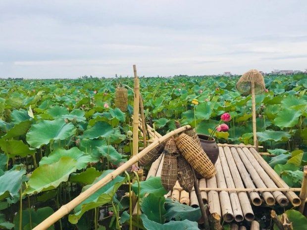 Additionally, you'll get to immerse yourself in the tranquil countryside scenery when you visit Vu Tay commune, where the lotus pond is nestled. It's as if you're transported to an incredibly peaceful destination. It seems like this place still preserves the ancient cultural values, with banyan trees, wells, and communal yards...